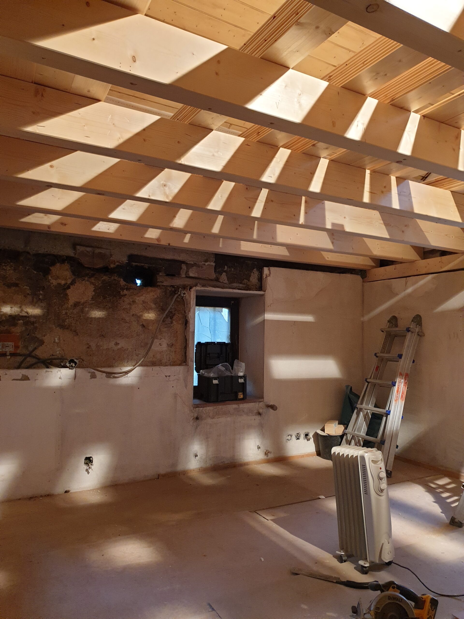 Die zweigeschossige Wohnung wurde durch einen Küchenbrand stark beschädigt und musste umfangreich saniert werden.